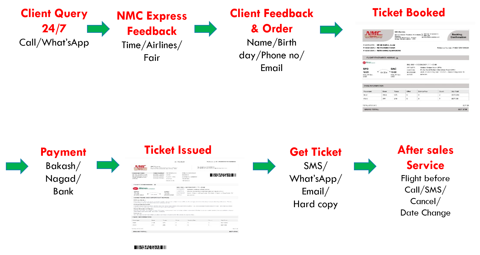 Pick and drop service is associated with air ticket service. Only the customer who takes our air ticket service can take this service. Cars and drivers are operated under the self-management of NMC Express. As a result, valued customers are safe and secure. Our drivers are specially trained to deliver your goods and you safely.
